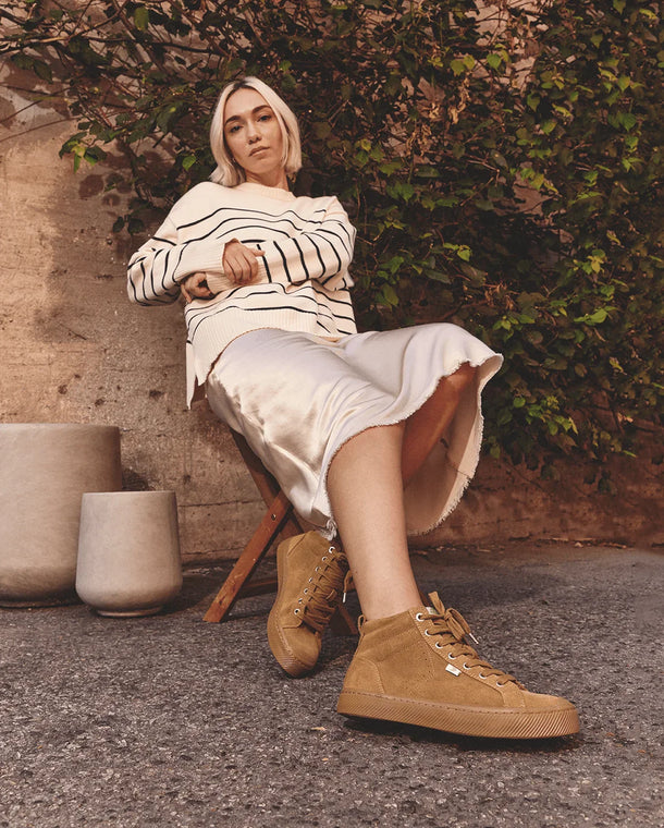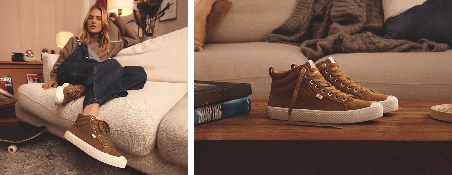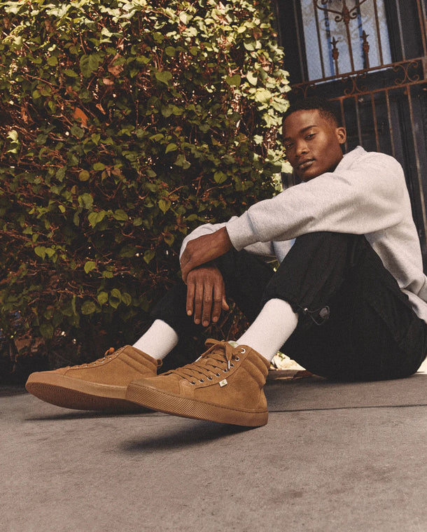 Unser charakteristischer Sneaker wurde zum High-Top-Modell weiterentwickelt. Lernen Sie den OCA High kennen, der aus hochwertigen Rohstoffen gefertigt ist und sich durch eine leichte Dämpfungstechnologie, eine perfekt gewichtete Gummisohle und ein klassisches Cap-Toe-Design auszeichnet. Er ist der Inbegriff des Old-School-Looks, hergestellt nach den Prinzipien der New School. Jetzt erhältlich in luxuriösem Triple Camel Suede.
